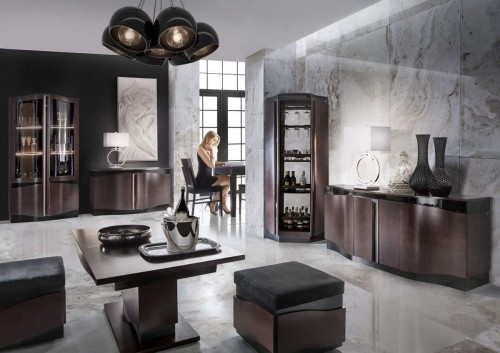Szklane powierzchnie dodają lekkości nawet najbardziej masywnym meblom. Kredensy, witryny, szafki z barkiem – czyli bryły z przeszkleniami – wnoszą do salonowej i jadalnianej aranżacji wdzięk oraz szyk.